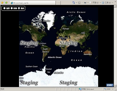 终于能看见VE的图了。当然,我们的开发账户是免费的,所以地图上有很多“Staging”麻点(每个tile一个):